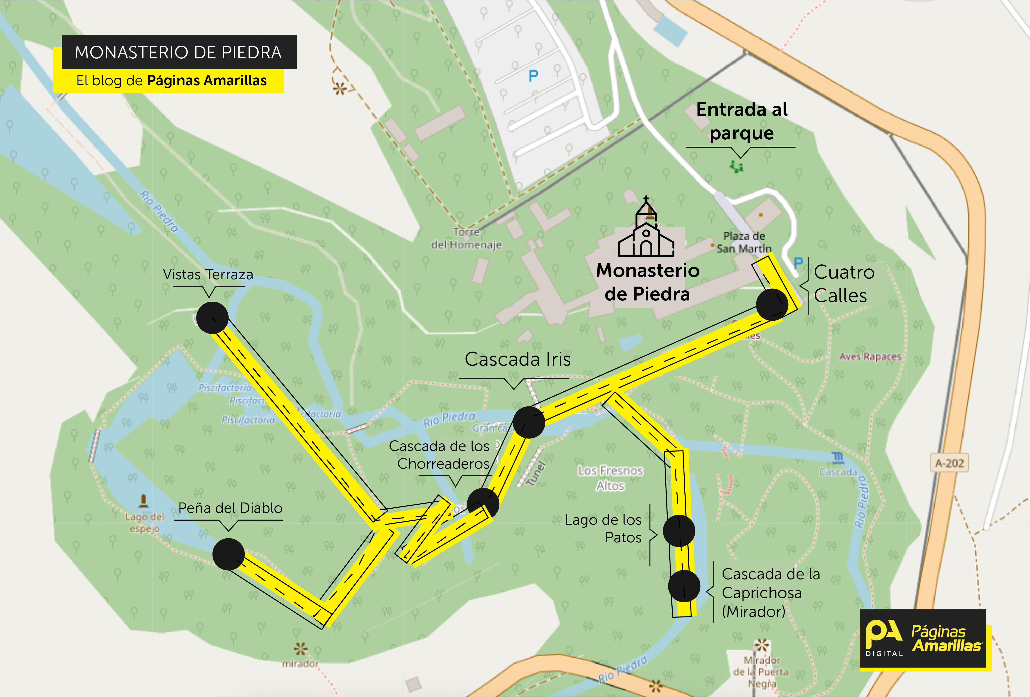 Mapa del Monasterio de Piedra que te ofrecemos desde Páginas Amarillas.