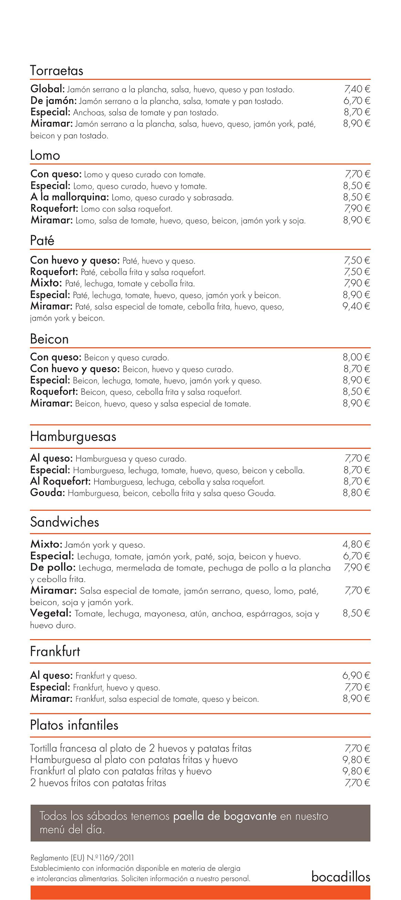 Cocina mediterránea. Menú de lunes a jueves 13,90 y sábados 15,90 con 6 primeros y 6 segundos a elegir, plato estrella todos los días arroces y fideuá variados. Terraza, parking gratuito, acceso minusválidos, local climatizado. Comida a la carta, raciones, tapas, bocadillos y mucho más